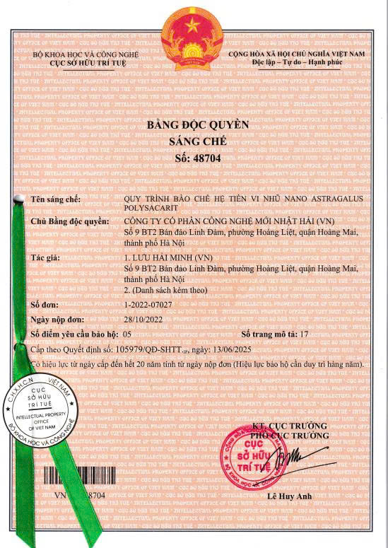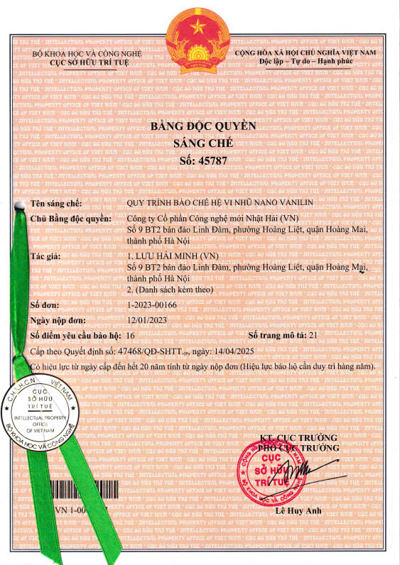 Công ty Cổ phần Công nghệ mới Nhật Hải (OIC NEW) tự hào là đơn vị tiên phong trong lĩnh vực nghiên cứu và phát triển các sản phẩm ứng dụng công nghệ nano. Ngày 13/06/2025, OIC NEW vinh dự được nhận thêm 2 bằng độc quyền sáng chế và 1 GPHI được Cục Sở hữu Trí Tuệ cấp